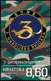 HRVATSKI DOMOVINSKI RAT – GARDIJSKE BRIGADE, 3. GARDIJSKA BRIGADA „KUNE“- Prema zapovijedi ministra obrane RH 29. travnja 1991. donesena je odluka o osnivanju 3. „A“ brigade ZNG RH s domicilom u Slavoniji i Baranji. Temelj za ustroj pješačkih bojni bio je u dijelu policijskih postrojbi MUP-a RH, koje su već bile formirane na tom području. Brigada je odlikovana Redom Nikole Šubića Zrinskog te Redom kneza Domagoja s ogrlicom kao najvišim vojnim odličjem.