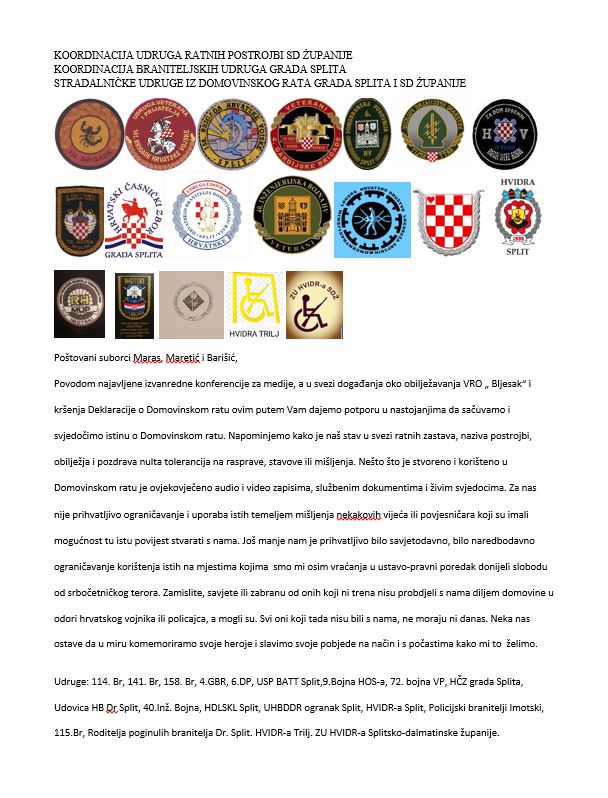 Poručili su kako neće dozvoliti da se simboli iz Drugog svjetskog rata povezuju sa simbolima Domovinskog rata te da ta dva rata nemaju ništa zajedničko.