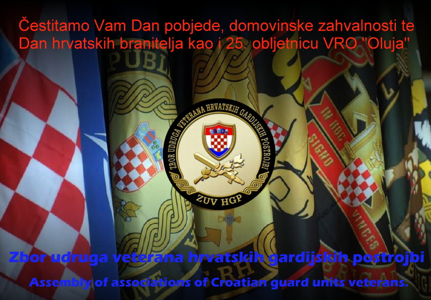Čestitamo Vam Dan pobjede, domovinske zahvalnosti i Dan hrvatskih branitelja kao i 25. obljetnicu VRO "Oluja"!